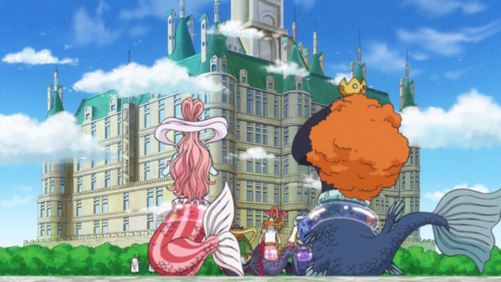וגם שפוקבושי (ניראלי שככה קוראים לו…? אני מתכוונת לנסיך עם השיער הכחול) שגם שהוא הרגיש שיש שם משהו לא בסדר בדרכנוע הוא לא דיבר על זה כי הוא לא רצה לעשות בלאגן. וזה מאוד הזכיר לי את האיפוק שיש למשפחה שלהם, כמו שראינו שאחרי שהמלכה (אמא שלהם) מתה הם ניסו להישאר שמחים בשביל שיראושי שלא תהיה עצובה למרות שהם בכו תוך כדי שניסו להצחיק אותה. זה ממש יפה לראות שגם אחרי שארק/סאגה נגמרת, הדמויות שהיו בהם עדיין "קיימות" בעולם של וואן פיס, ולא מתעלמים מהם ומהאשיות שלהם- זה משהו שאני מאוד אוהבת בוואן פיס!! [ מקווה שהסברתי את זה מובן מספיק 🙂 ]