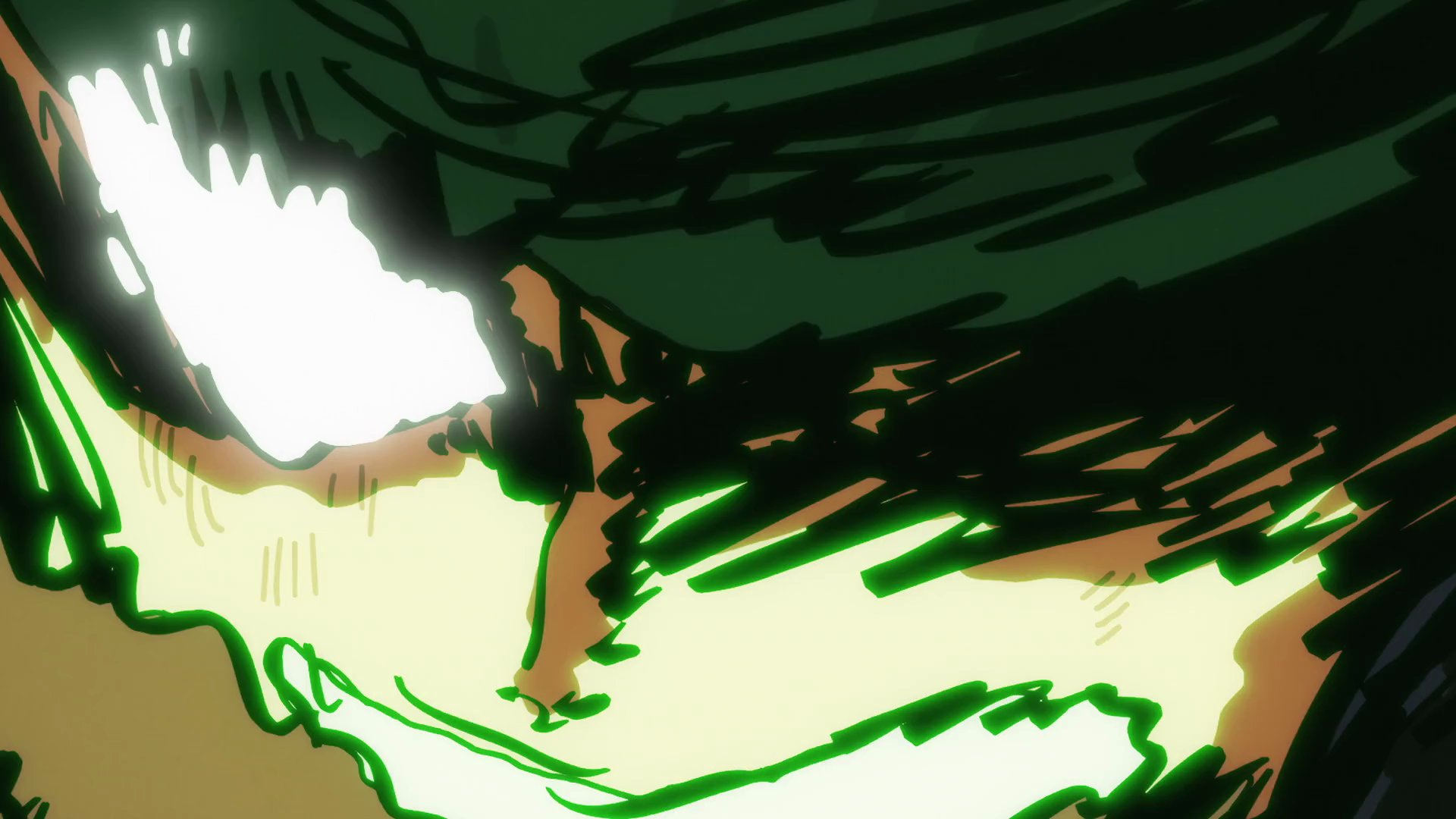 את המתקפה עצמה, עם זאת, מבצע האיאטו קורוסקי (Hayato Kurosaki), והוא ממלא אותה באפקטים מאוד יפים – דבר לא מפתיע, בהתחשב בעבודתו על השמדת הבית של אקי, הסצנה ההיא של מאקימה בפרק 9, הפתיח, וקטעים נוספים בצ'יינסו מן.