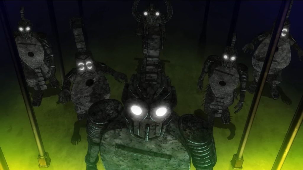במילים אחרות, לי מייד עולה השאלה – האם זה רומז שאלג'יה קרוב לאגהד – אי המחקר של וגהפאנק? ובין אם כן או לא, מה גרם לדן דן מושי של SSG להיסחף את חופי האי אלג'יה…? ספינה שלהם טבעה באיזור? למה? במידה ואגהד לא קרוב לאלג'יה, מה היא עשתה שם? אולי היא באה לשם בגלל הלוחמים הרובוטיים מהספרייה, שמאוד מזכירים את הרובוט הענק מהמאה האבודה שבאגהד? ובלי קשר ללמה היא הייתה בקרבת אגהד, מי הטביע אותה, ולמה? הפרט הקטן והמוזר הזה מעלה כל-כך הרבה שאלות, במיוחד בגלל שמדובר במשהו שהאנימטורים היו חייבים לשבת ולהשקיע זמן בלצייר אותו – כך שזה חייב להיות מכוון.