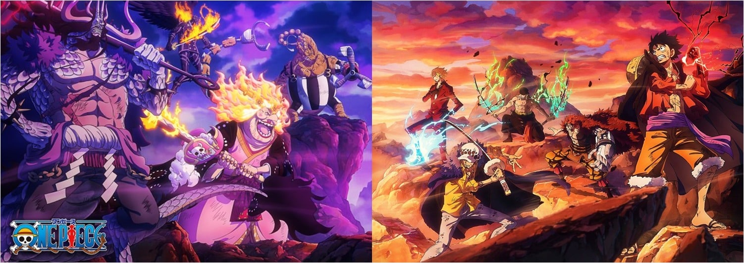 כפי שניתן לצפות מצ'ו, הפוסטרים מטורפים – עם איור סופר יפה לכול הדמויות, ובמיוחד לסאנג'י. אני גם אוהב את המיקום של לופי וקאידו – הקרב האחרון – מקדימה, ומאחוריהם קיד ולואו מול ביג מאם, כאשר בסוף נמצאים הסגנים (או הכנפיים) של לופי וקאידו. מותאם בדיוק לסדר הקרבות, ולחשיבותם במלחמה.