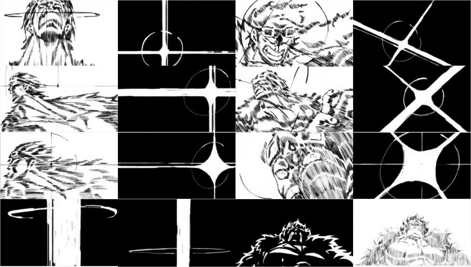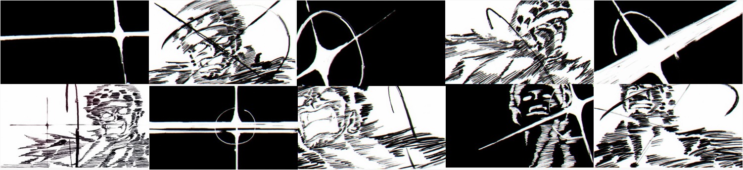 בין הקטעים של קיד הפצוע מתנשם ומתנשף, כפי שאתם בוודאי זוכרים, אנחנו מקבלים תמונות עומדות ומאוד יפות שמציגות בקצרה את סיפורו של קיד עד לרגע הזה – תמונות אשר, בהתאמה להיותן נטולות תנועה, צוירו על-ידי צייר, ולא אנימטור. הצייר הנ"ל הוא אחד מארבעה האמנים שהנרי הכי התלהב והתרגש מהצלחתו להביא אותם לעבוד על הפרק, ואמן הקומיקס הצרפתי מאחורי "כיתה ירוקה" (Green Class), דוד טאקו (David Tako). הציורים של טאקו עבור הפרק נראים מדהים, וכוללים רמת פירוט יפהפייה, מה שהפך אותם לאחד האלמנטים הוויזואליים הזכירים ביותר של הפרק. אגב, הציור הראשון, זה של קיד הילד, הוא הפעם הראשונה שבה העיצוב הזה של קיד מופיע באנימה אי-פעם. הוא מבוסס על ציור שאודה פרסם פעם ב- SBS, וגם הופיע בעבר באחד הסרטים כפרט מגניב למעריצים, אבל בכול הנוגע לסדרת האנימה עצמה – זוהי הפעם הראשונה.